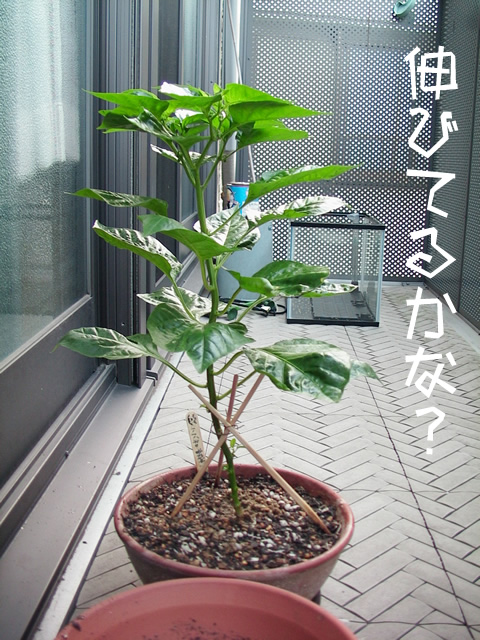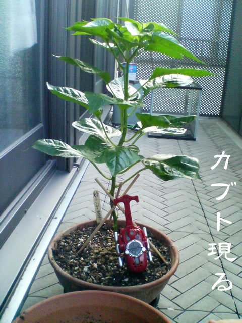 うめのぶの記事ばっかりになってしまってますが。 「おーい生きてんのか?」 読者の皆さんがお待ちかねだぞ! てなわけで、 ハバネロのつぼみですが、 こんな感じで垂れてきました。 そういえば、下向きに花が咲くのでつぼみも下を向くんだね。 こんなステップが隠されていたとは。。。 なかなか咲かないなとヤキモキしていましたよ。 定点観測です。 前回の写真はこちら 伸びてるようです。 |