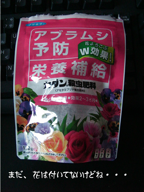 義母から貰った殺虫栄養剤。 シェフレラにアブラムシが憑いていたので貰ったものです。 アブラムシ怖いですねぇ。どこからやってくるのだろうか。。。 殺虫効果のほかに肥料としても使えるので便利。 2,3ヶ月効果が持続するそうです。 詳しくはこちら で、早速置いてみました。 一株に2錠置けと書いてあるので、撮影後にもう1錠おいておきました。 外において日の光を浴びているせいか、葉っぱも青々として、節の間も伸びて 来ています。 花壇にも置いておきました。 肥料にもなるし良いですね。 |