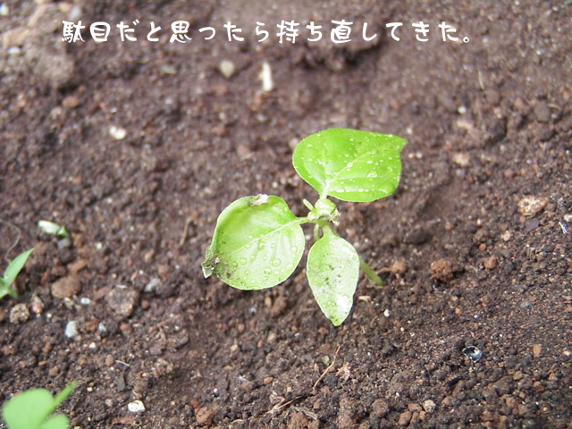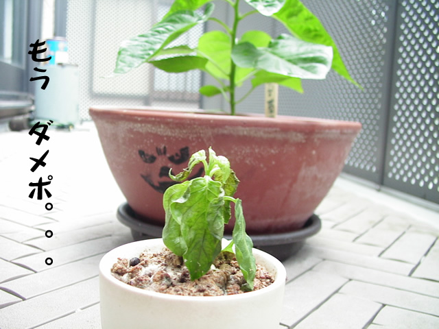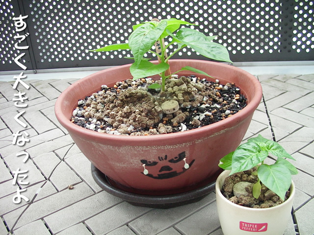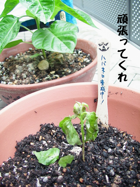 W杯初戦敗退しちゃいましたね。 もっと攻めなきゃねぇ攻撃は最大の防御って言うぢゃないですか! 話はハバネロに戻して~堆肥を変えたら成長してきたよ。 やっぱり栄養分がなかったんだなぁ! すまんなハバネロ! 一時期はど~なるかと思ったよ。全く成長しないから 限界か? なんて思っちゃってましたが間引きした後が問題で…ウワァン(><;) 昨日は軽くサッカーについてハバネロと話してましたよ(笑 |