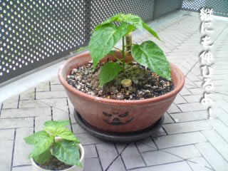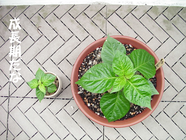 追肥した、バットグアノ入りの肥料ですが、カビてます。 心配になって、ネットで調べましたが、無問題ということで 一安心ですが、あまり気持ちのいいものではないですな。 で、コレが今朝のハバネロ。 もう直径が植木鉢の直径を越えそうなんですけど。。。 サブのほうもそれなりに。 今、(ステキナ)植木鉢を物色中。 |