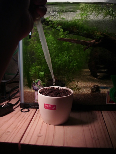 「天然水」で土を戻した人もいますが。わたくしの場合はこれ。 「水槽の水」です。 メダカの水槽ですが、糞とかしてるので肥料も含まれているのかな? という淡い期待もこもっています。 このゴールデンウィークは暑い日が続いていて、土の表面が一日で 乾いてしまいます。 気をつけねば。。。 |
